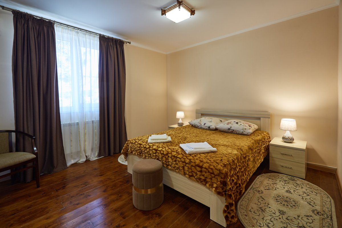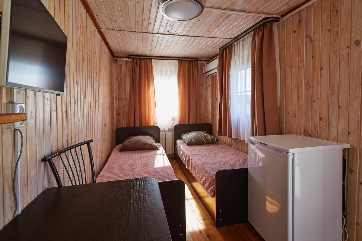 Спокойная атмосфера нам понравилась, все было хорошо и вовремя. Приезжали вчетвером, нам всего хватало в номере, в нем была двухспальная кровать. При посещении базы отдыха важно, что рядом вода, удобно, что предоставили лодки.